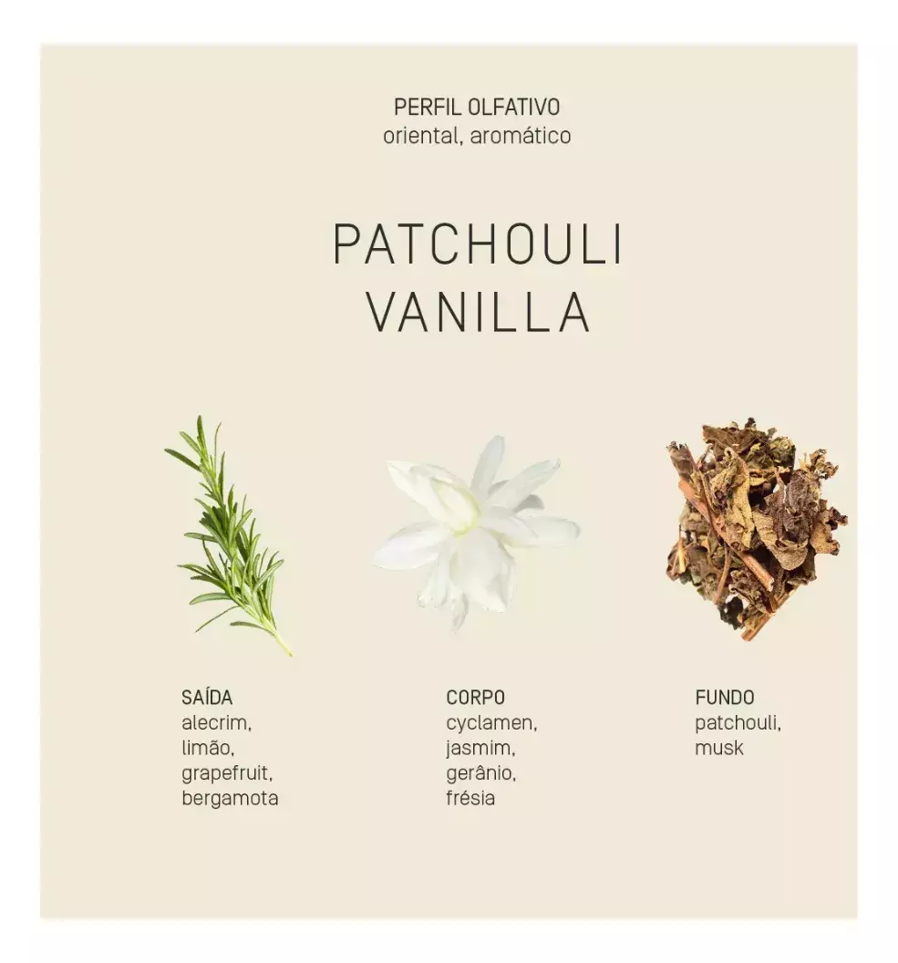 A fragrância Patchouli Vanilla é perfeita para quem busca um perfume envolvente e equilibrado, que transforma qualquer espaço em um ambiente acolhedor e elegante.
