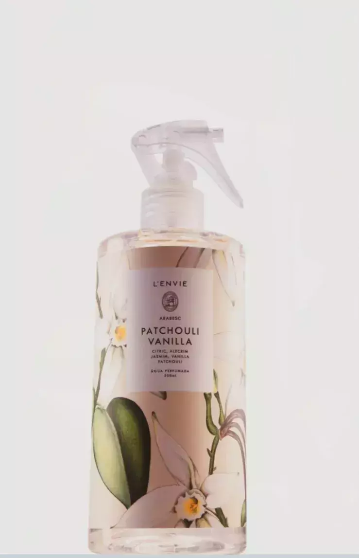 Água Perfumada L’Envie Patchouli Vanilla 500ml – Aromatizador para Tecidos e Ambientes com Fragrância Amadeirada e Doce
