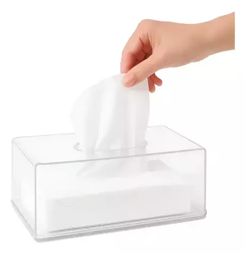 Mantenha seus lenços sempre à mão com praticidade e estilo! Esta caixa organizadora em acrílico cristal transparente une resistência e elegância, permitindo que você organize seus lenços com charme e sofisticação.