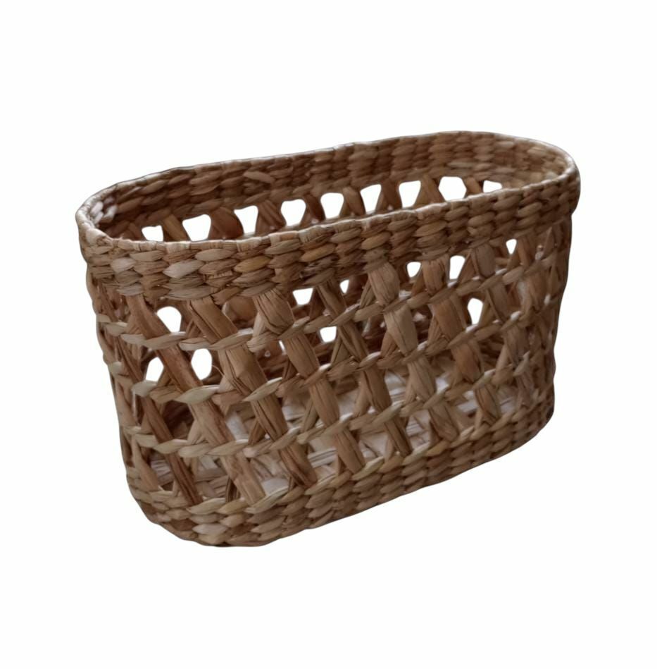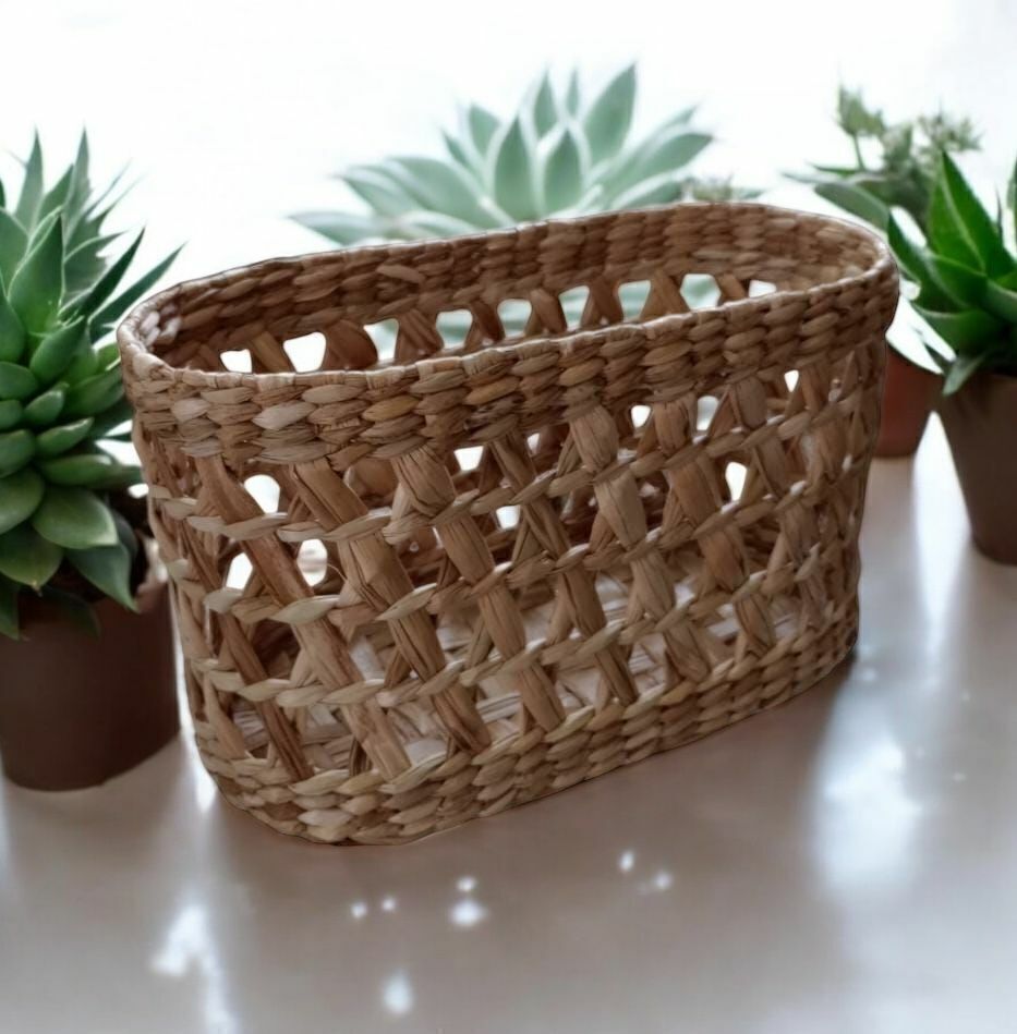 Organize com charme usando este cesto oval vazado, ideal para decorar e armazenar com praticidade. Com medidas de 30 x 18 x 18 cm, é perfeito para guardar objetos, toalhas, cosméticos, itens de lavabo ou até mesmo para compor uma mesa com estilo rústico e artesanal.
