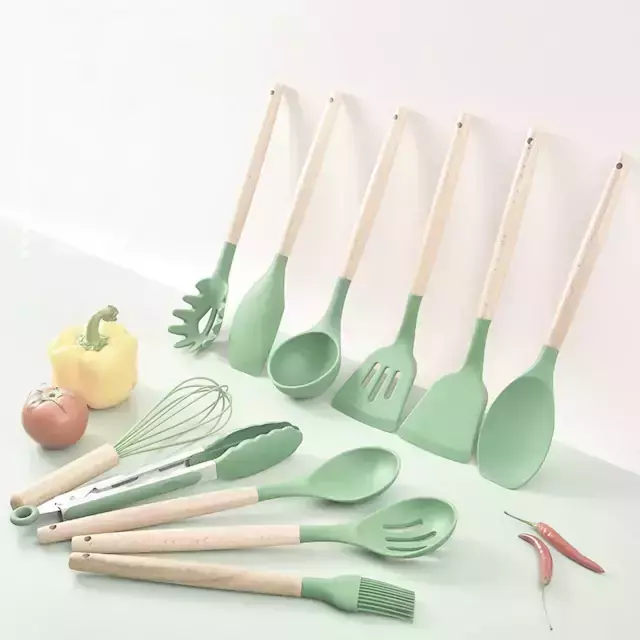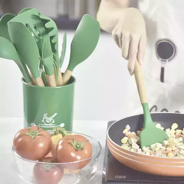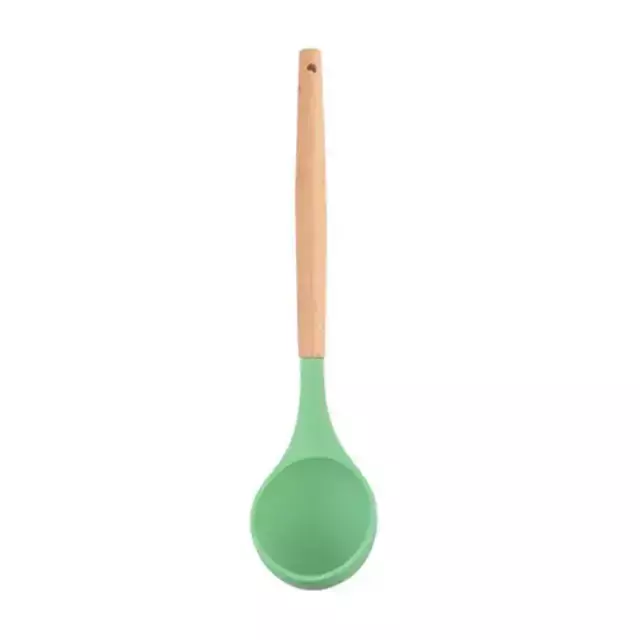 Feito de silicone de qualidade alimentar e alça de madeira natural, seguro e antiaderente.