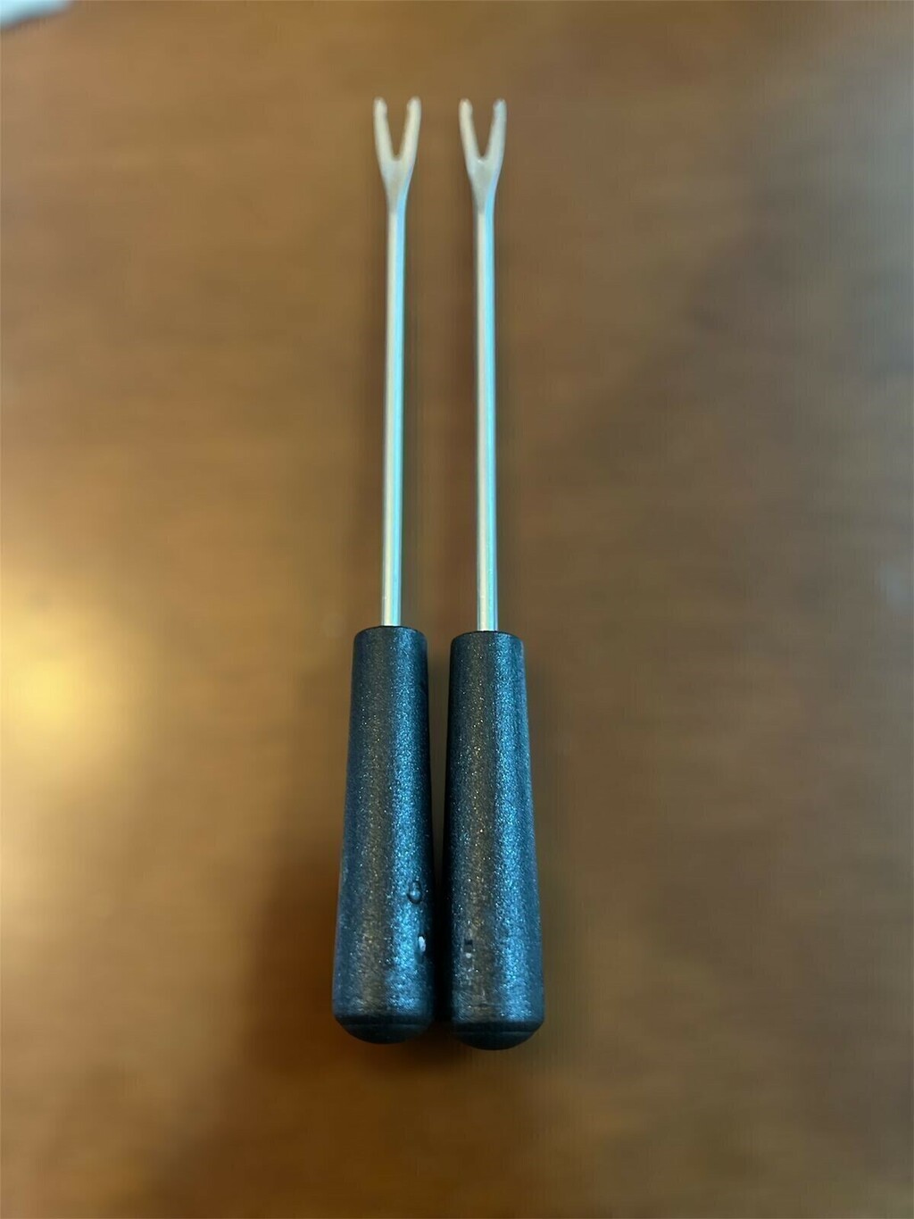 Ponta com dois dentes, ideal para espetar carnes, pães ou frutas