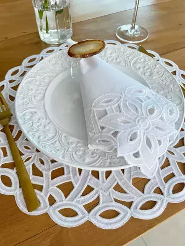 Adicione um toque de sofisticação e delicadeza à sua mesa posta com este lindo guardanapo branco com acabamento em renda. Feito em tecido leve e elegante, é ideal para ocasiões especiais como jantares, brunches, casamentos, batizados ou simplesmente para quem ama uma mesa bem posta no dia a dia.