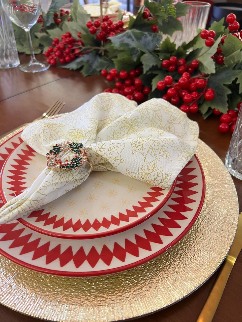 O Guardanapo de Tecido com Estampa Natalina de Flores Douradas é a escolha ideal para compor mesas elegantes e cheias de encanto nas celebrações de fim de ano. Com design sofisticado e acabamento de qualidade, ele adiciona um toque de brilho e requinte à decoração da mesa.