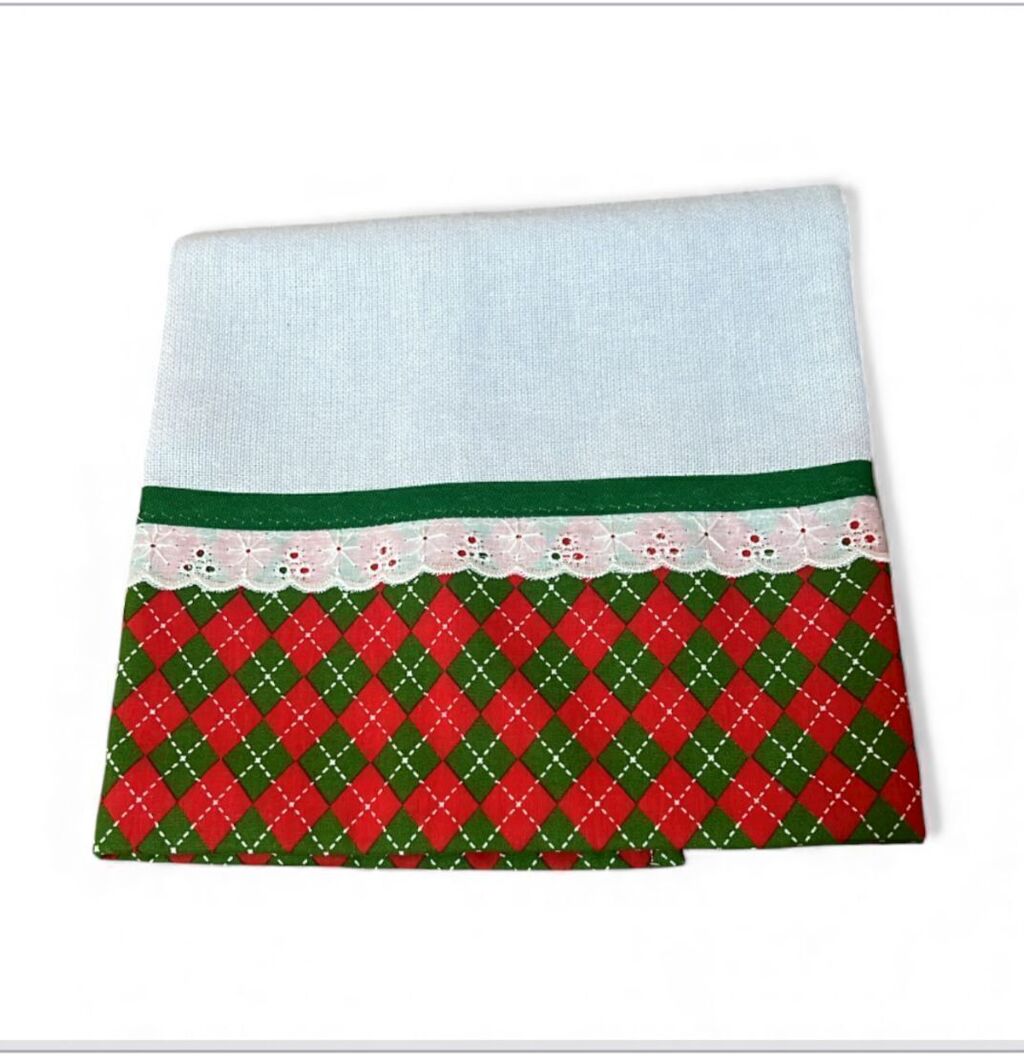 Pano de prato com estampa xadrez verde em estilo natalino, ideal para compor a decoração da cozinha com charme e praticidade. Produzido em tecido de alta absorção, possui acabamento reforçado e mede 68 cm de altura por 50 cm de largura.