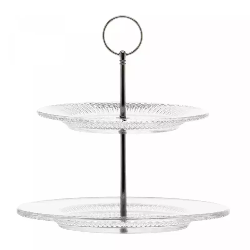 Este porta doces possui dois níveis de cristal cuidadosamente trabalhados, proporcionando uma exibição deslumbrante para seus deliciosos quitutes.