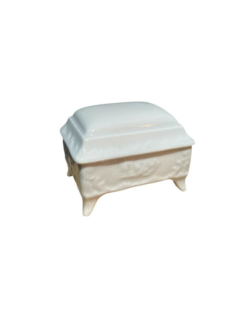 Guarde suas joias e pequenos tesouros com elegância! O porta-joias mini em formato de arca é feito em porcelana de alta qualidade, com acabamento delicado e design encantador. Perfeito para organizar anéis, brincos ou simplesmente decorar com um toque romântico e refinado.