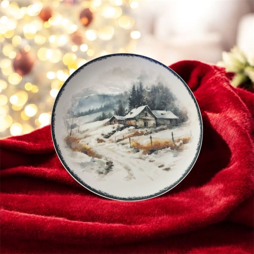 O Prato Raso 26 cm Oxford – Casa na neve combina qualidade e charme para a sua mesa de Natal. Produzido em porcelana Oxford, possui acabamento delicado e estampas exclusivas que trazem o clima natalino para refeições especiais.