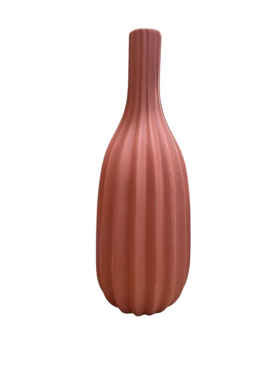 O vaso tubo listrado médio em cerâmica na cor goiaba é uma peça moderna e versátil para a decoração. Seu design em linhas verticais adiciona sofisticação e textura, valorizando arranjos florais naturais ou artificiais. Ideal para compor ambientes como salas, halls de entrada, varandas ou escritórios, trazendo um toque contemporâneo e elegante.